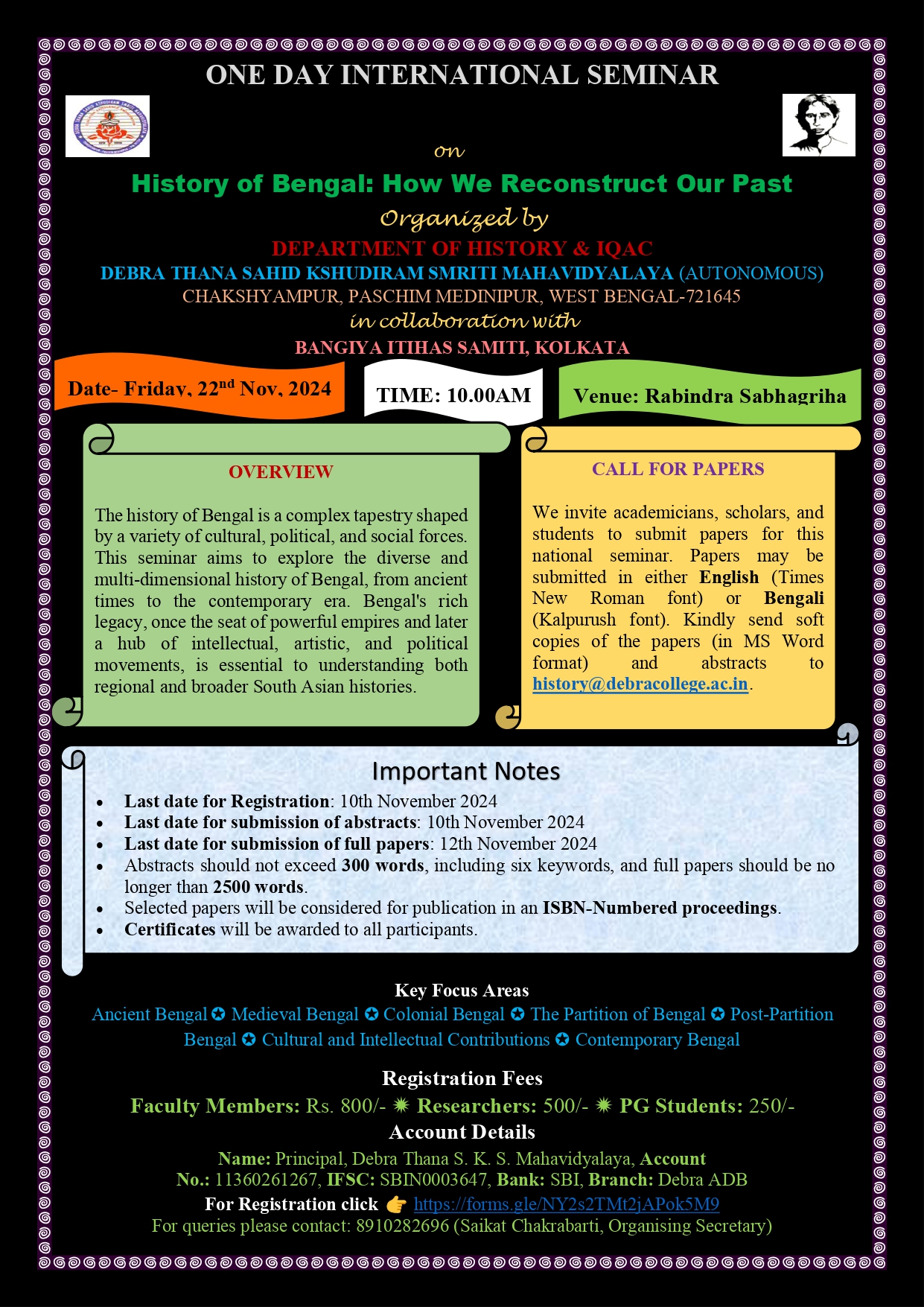 Organized by: Department of History & IQAC, Debra Thana Sahid Kshudiram Smriti Mahavidyalaya (Autonomous) in collaboration with Bangiya Itihas Samiti, Kolkata